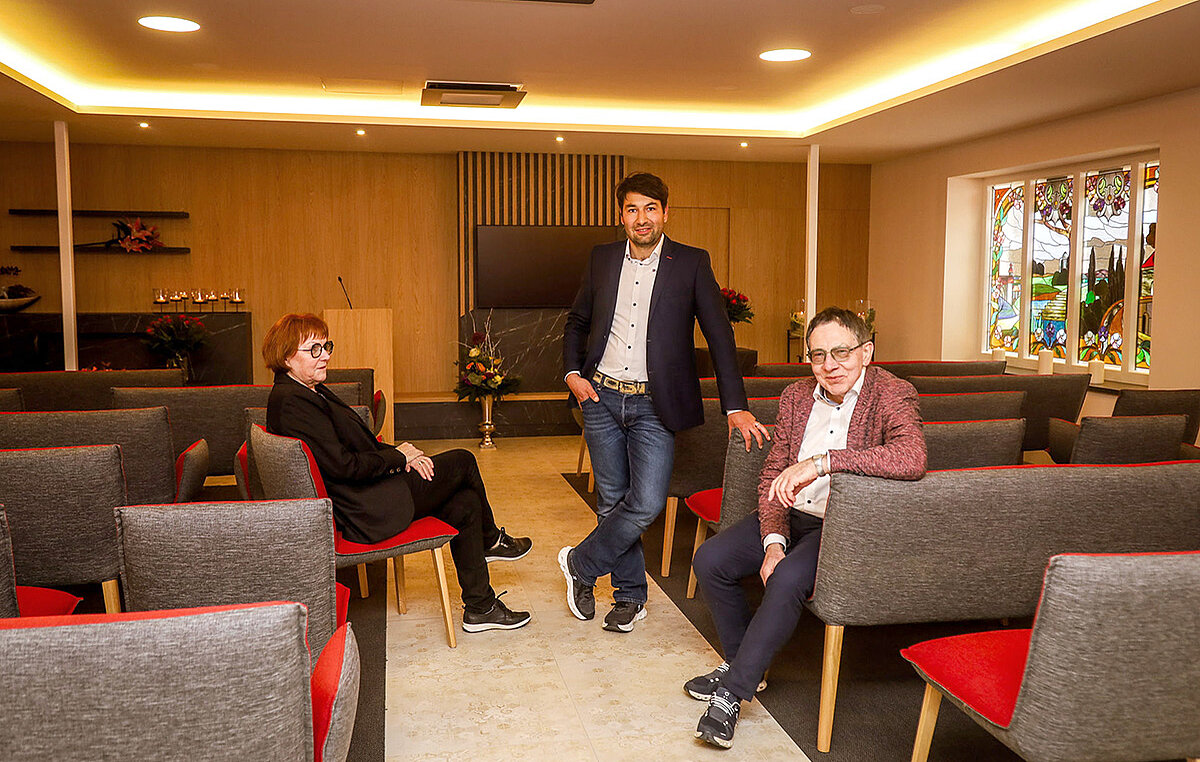 Inmitten von Jüterbog befindet sich unsere liebevoll gestaltete Hauskapelle – ein Ort der Ruhe und des würdevollen Abschieds. Hier haben Sie die Möglichkeit, ganz in vertraulichem Rahmen Abschied zu nehmen, begleitet von individueller Atmosphäre und dezenter Ausdruckskraft.